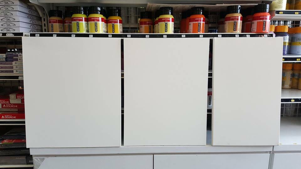 還有一種是畫布板,畫布板是將畫布貼合在三夾板上,因為較薄所以節省空間,缺點是超過10號以上容易變形,所以適合小畫。