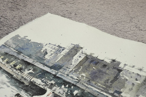 1.將水彩紙噴濕(用刷的也可),讓紙張慢慢吸水,紙會變皺變大張。