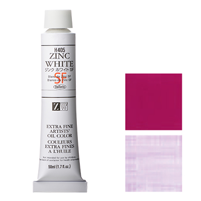 好賓鋅白油畫顏料是以鋅白(PW4)和罌粟油製作而成。具有很好的透明度,和其他顏色混色時可產生漂亮的粉色。不會和硫化物產生反應,混色上並無限制。乾燥速度慢,白度較鉛白更高。乾燥後的塗膜表面較為脆弱,塗佈於鋅白上的顏料偶爾會產生龜裂或剝落的情形,因此非常不建議將鋅白作為打底顏料使用。