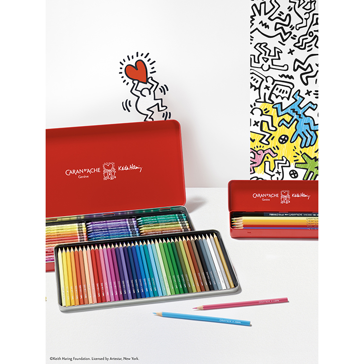 精緻的CARAN D’ACHE + Keith Haring紅色金屬禮盒和聯名圖騰 紙套包裝。
