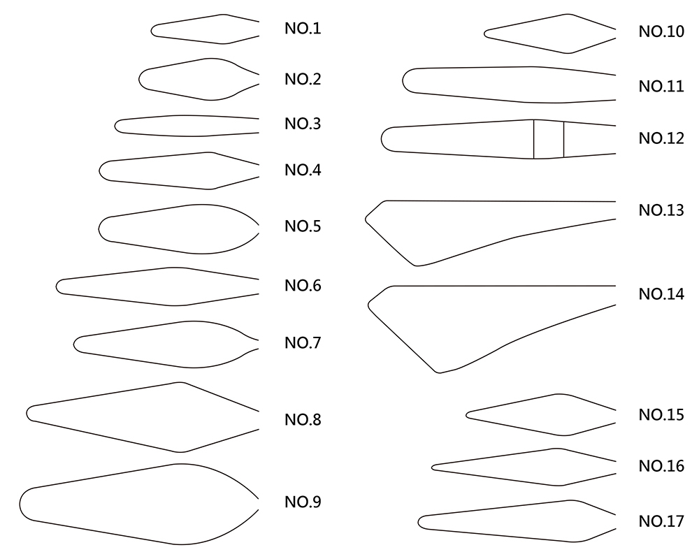 | 號數 | 刃長×刃寬 |