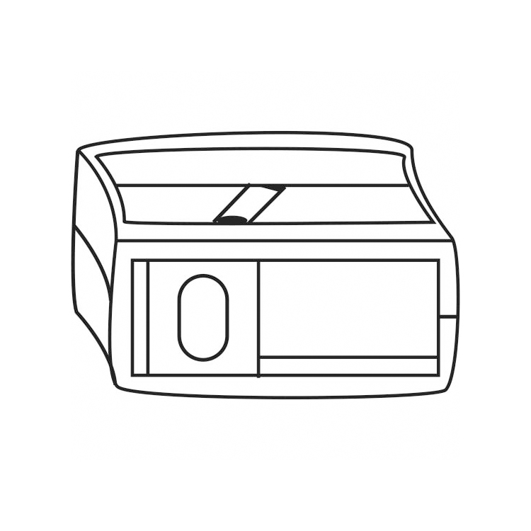 削筆器兩頭有不同功用的削筆孔,一側刨削扁筆的寬面,另一側削扁筆的窄面。