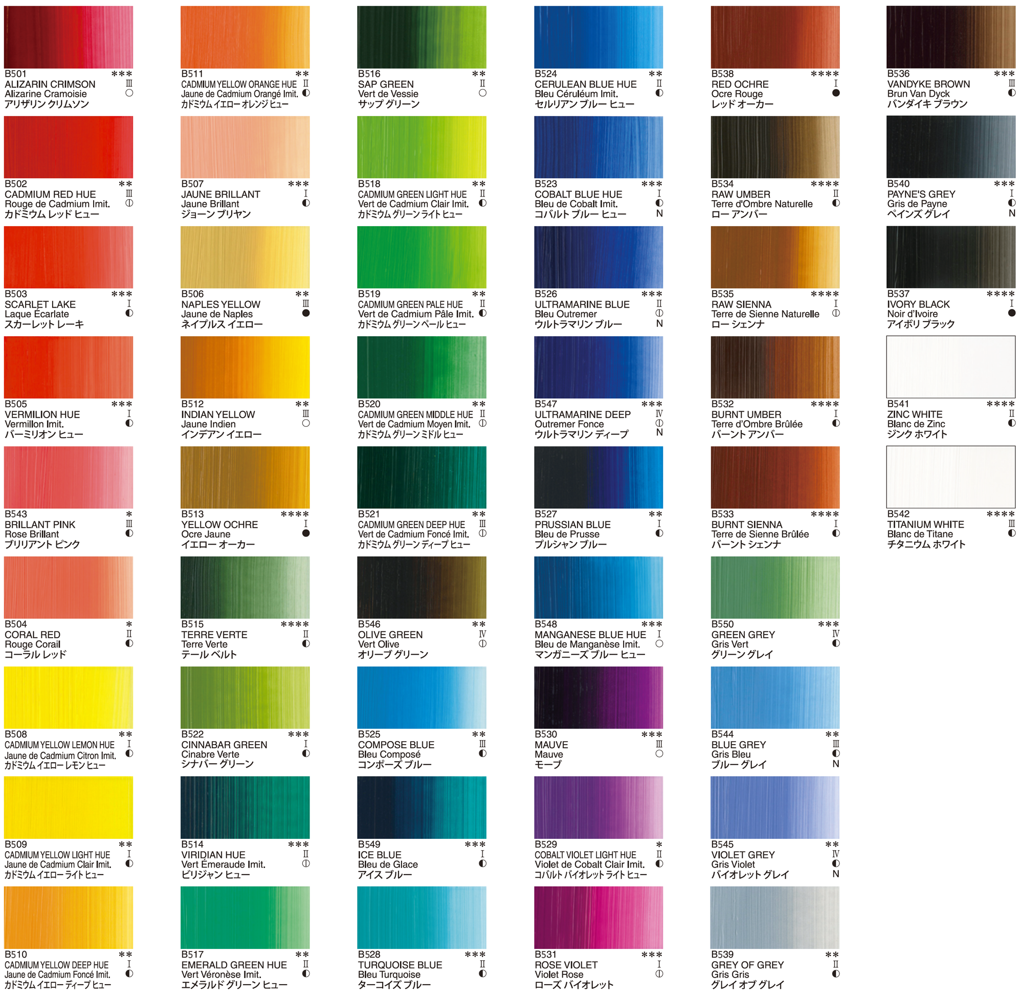 生產所使用的色料和媒劑皆經過日本HOLBEIN實驗室的篩選和檢測。從原本的100色中挑選出了較常使用和品質較佳的50色,成為了POP油畫顏料所供應的色系。