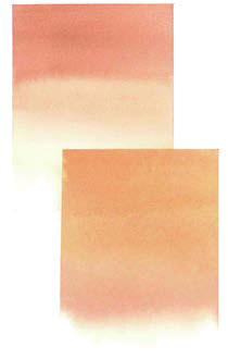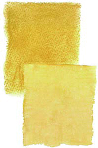 上圖中,左上方的色塊為黃赭(W234 Yellow Ochre)的顯色效果。而右下方的色塊則是黃赭加上好賓阿拉伯膠後所顯現出的效果。