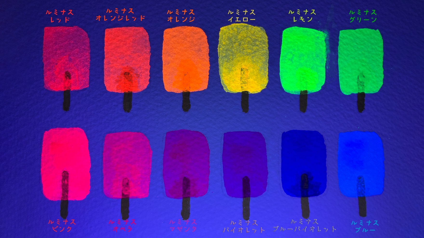 螢光色粉的耐光性普遍不佳,建議遠離陽光,並搭配抗UV保護膠進行作品保護