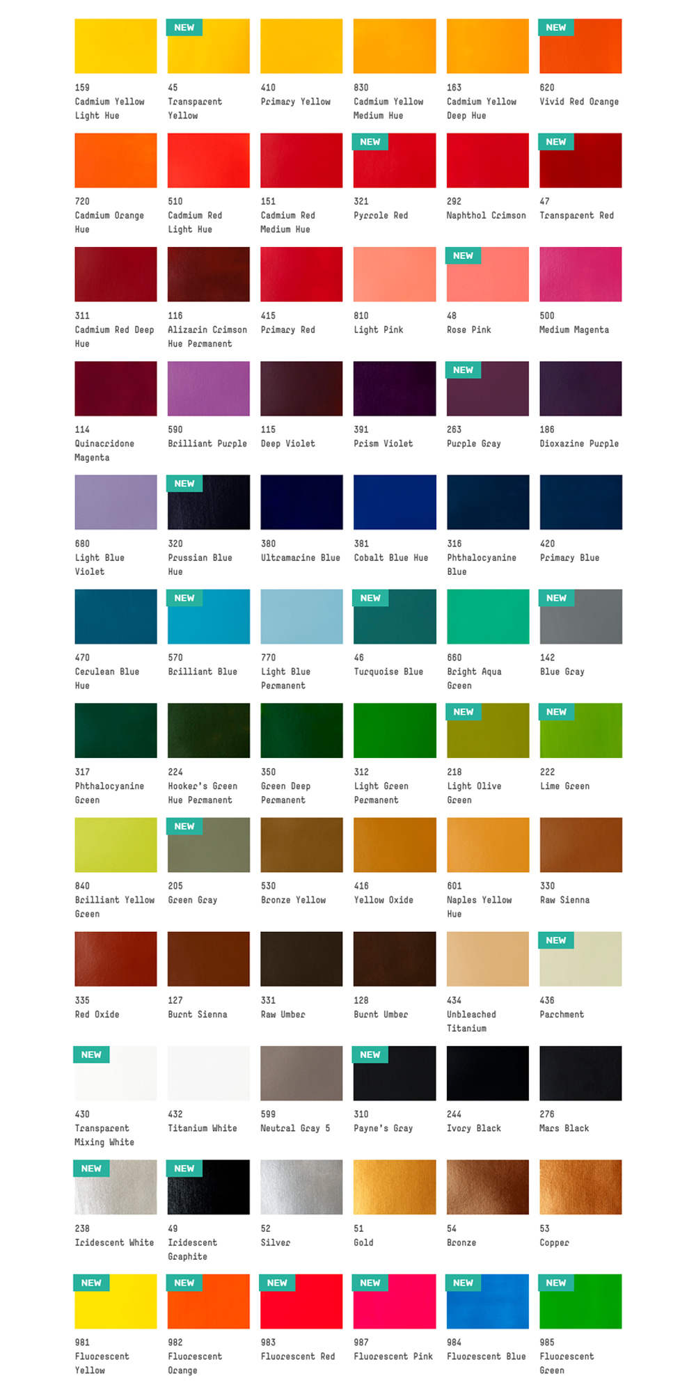 適用於所有用量大的藝術家和繪畫創作者,選用與專家級系列相同的耐光色粉製成,但含量較低,讓高品質和低價格達到平衡。