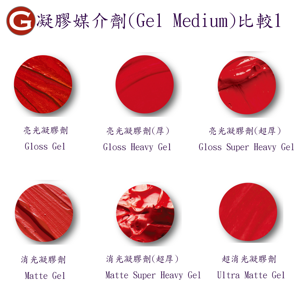 GEL 一般型凝膠,有亮面-GLOSS和霧面-MATTE兩款HEAVY GEL -- 厚(濃稠型)SUPER HEAVY GEL-- 超厚(超濃稠型)