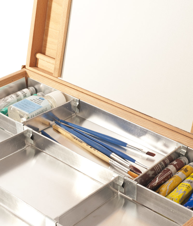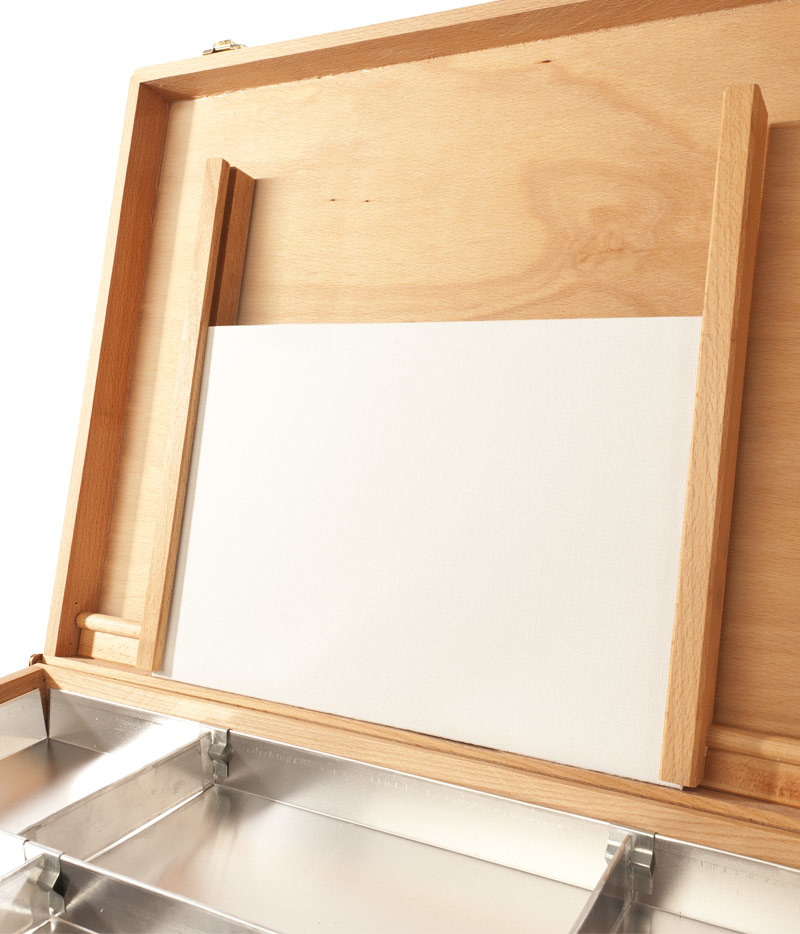 ▼上層可放置攜帶畫布板,也可當寫生畫架使用(本畫箱不含畫布板)