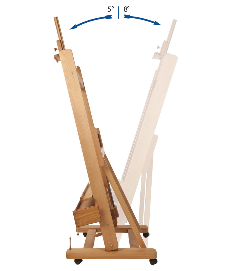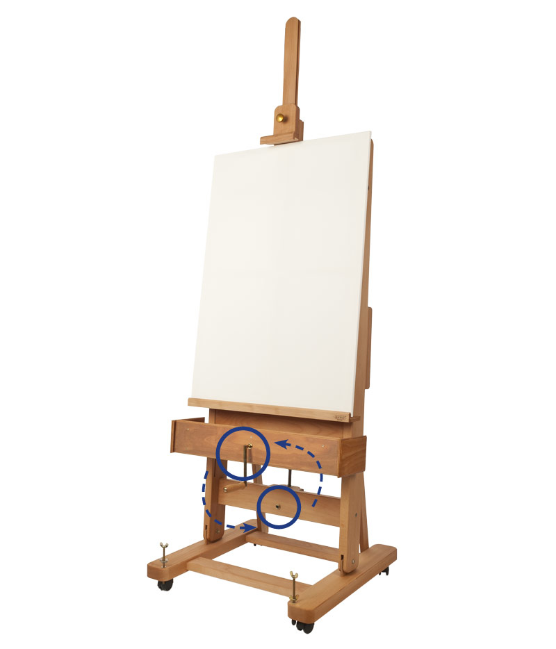 畫架的升降及前後傾都是以手搖轉動螺桿驅動,省力又精準。
