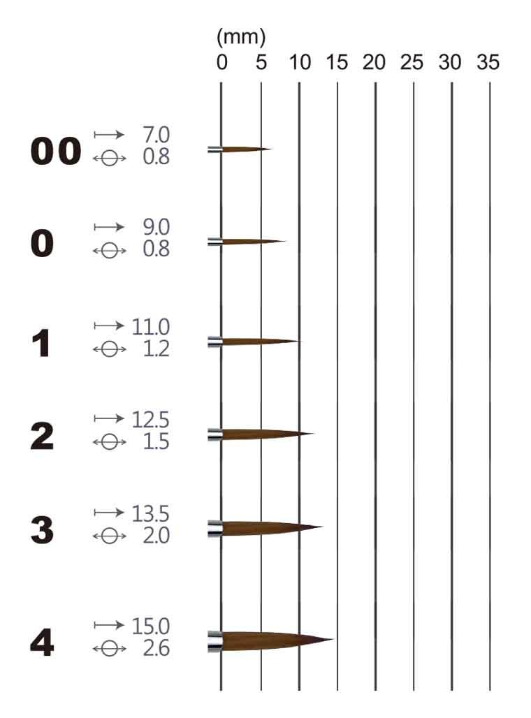 組合號數:#00/0/1/2/3/4,筆身長度約19公分。