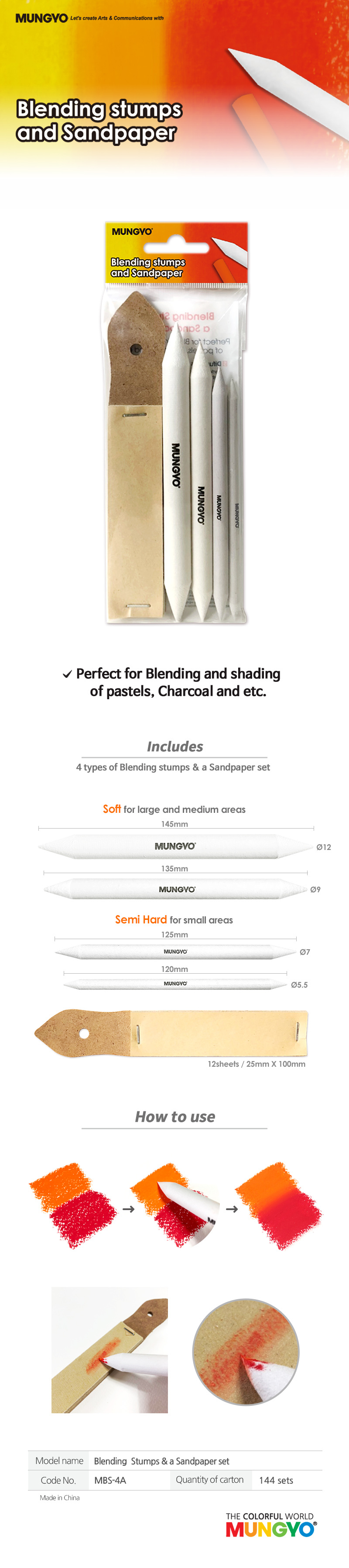 繪畫創作時可以代替手指頭做壓、抹擦的技巧,用髒時可作其他部分的淺色調,也可用美工刀像削鉛筆一樣完全削除,是非常好用的繪畫工具。