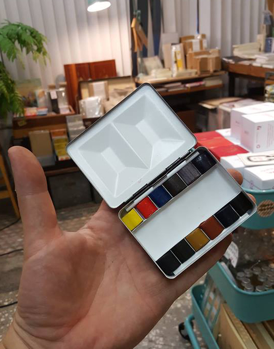 8色半塊附水壺塘瓷盒、 8色半塊塘瓷盒、 12色半塊鐵盒、 16色半塊塘瓷鐵盒、 12色1/4塊塘瓷鐵盒、16色半塊塘瓷鐵盒(金色、)48色半塊鐵盒