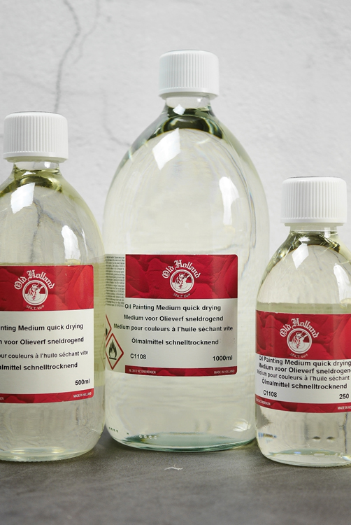 ●光澤度略低於亞麻仁油,不會影響乾燥時間,筆觸仍然可見。●調和的成分是亞麻籽油,松節油和石油油精混合而成。不含任何樹脂或乾燥劑。●有四種容量:100ml、250ml、500ml、1000ml。老荷蘭1108#快乾調和油