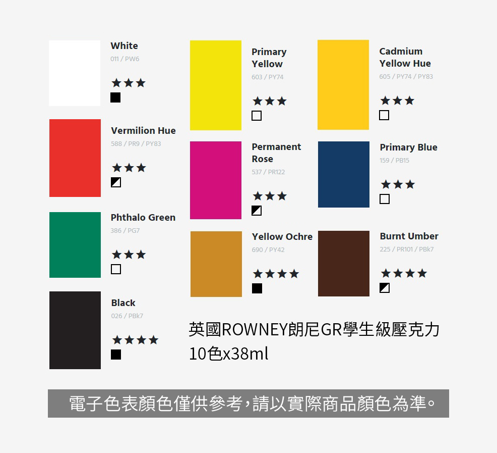 〔英國 ROWNEY 朗尼〕GR入門級壓克力顏料組 / 10色x38ml