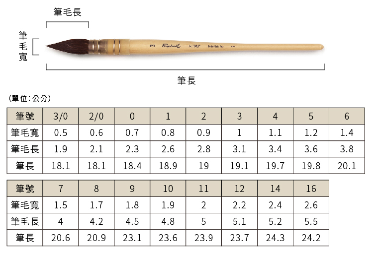 同號數的水彩筆,松鼠毛的尺寸比一般水彩筆大很多,如不清楚的地方煩請再洽詢我們;如有大號數需求請按"貨到通知我",我們會另外為您安排,謝謝