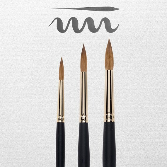 精選紅貂毛手工製作,吸水性與彈性兼備,金色筆箍,消光黑筆桿,質感很棒~