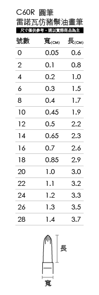 雷諾瓦仿豬鬃油畫筆 (丸)C60R