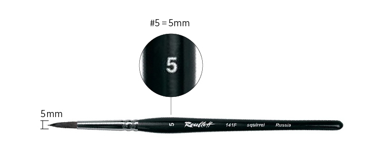 Roubloff畫筆的號數就是以畫筆筆毛束的直徑大小(mm)為標準