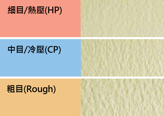 有粗紋、冷壓中紋、熱壓細紋三種紋路
