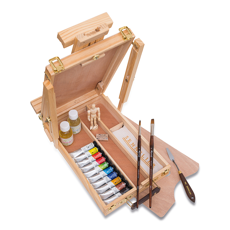 學生及顏料用具套組,結合了桌上型畫架,讓繪畫使用起來更方便