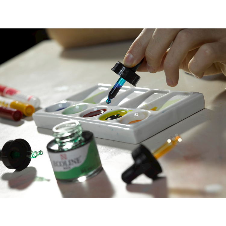Talens Ecoline 是水性的彩色墨水,顏色非常明亮和絢麗,非常適合平面繪畫及設計使用。