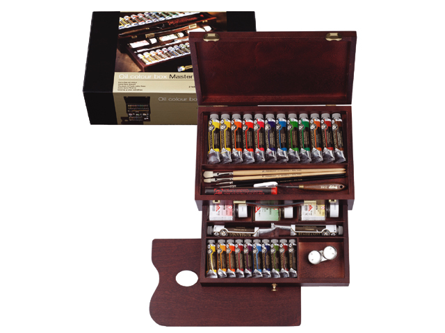 因安全考量,會將木盒組內的松節油、調和油、凡尼斯…等,替換成無揮發性的乾性油
