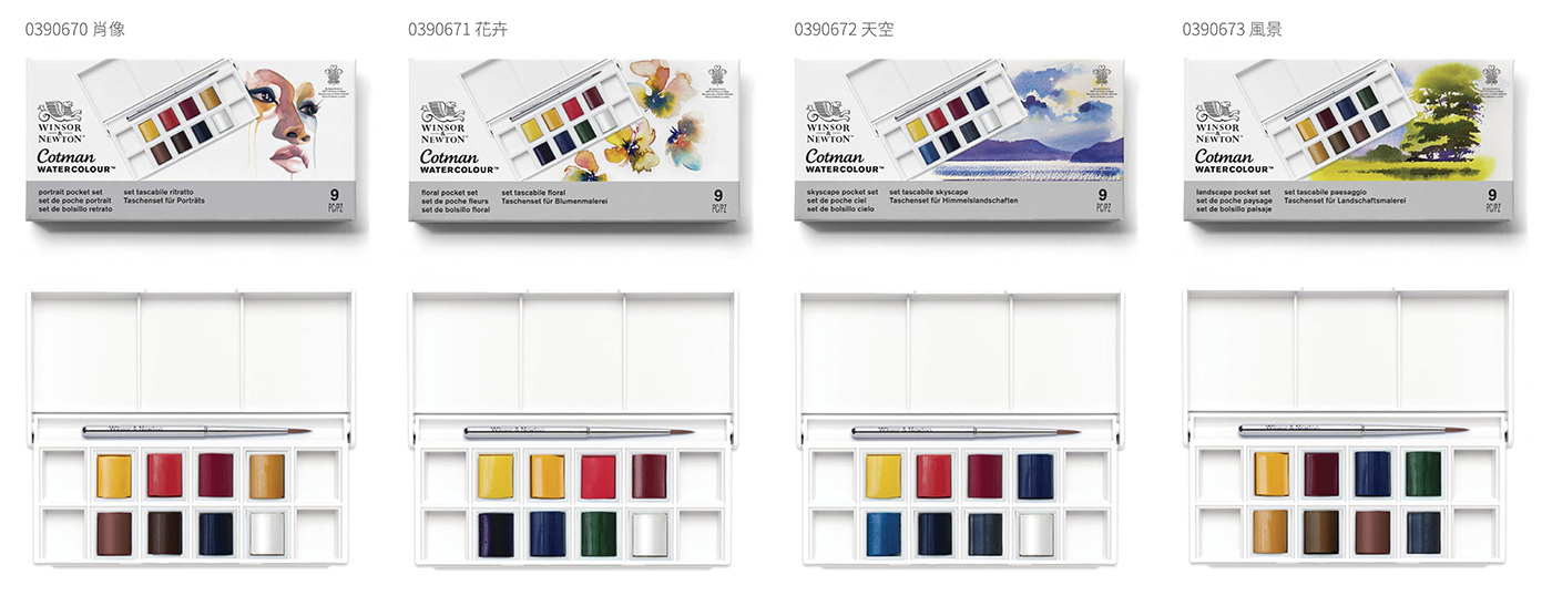 英國牛頓為初學者推出的新8色主題塊狀水彩套組,共有四款如下: