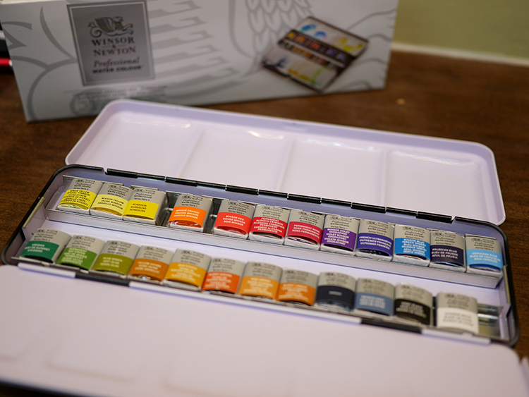 466Permanent Alizarin Crimson • 730Winsor Yellow • 653Transparent Yellow • 724Winsor Orange • 726Winsor Red • 150Chinese White •