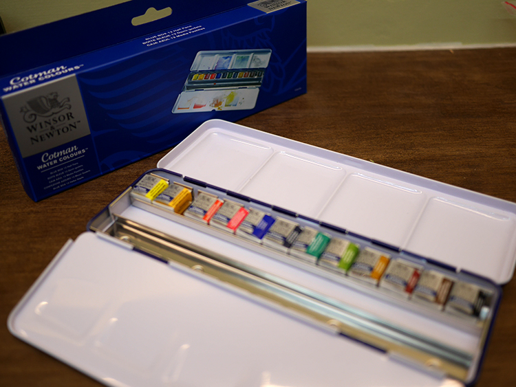 707Winsor Blue (Green Shade) • 503Permanent Sap Green • 744Yellow Ochre • 552Raw Sienna • 074Burnt Sienna • 150Chinese White • 331Ivory Black.