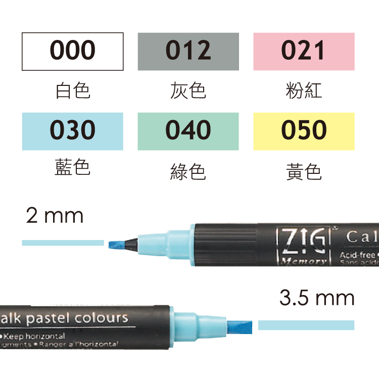 適合英文書法書寫之筆款,雙頭2mm及3.5mm筆寬設計,一支筆即可寫出兩種粗細的英文字體。